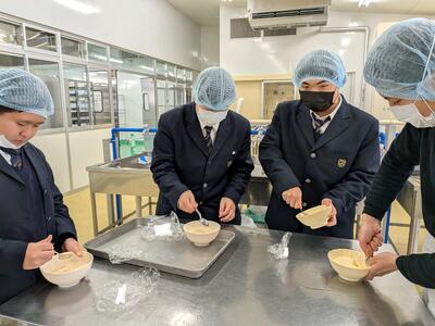 2年食品科学科の食品製造(選択授業)で「とうふ」と「アイスクリーム」製造を行いました