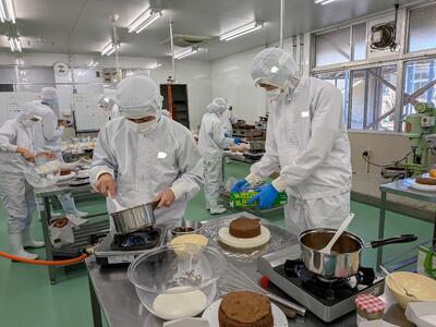 食品科では、お菓子やパン、ジャム、ジュース、ハム、ベーコンなど様々な食品を作ります!実習の様子などはちょくちょくホームページにアップしているのでお見逃しなく