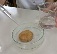 殺菌したシャーレにビスケットを入れ、ピペットで水分を含ませます。