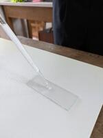 先生の説明を聞き、試料の準備をします。麹と酵母のプレパラートを作ったら顕微鏡で観察します!!