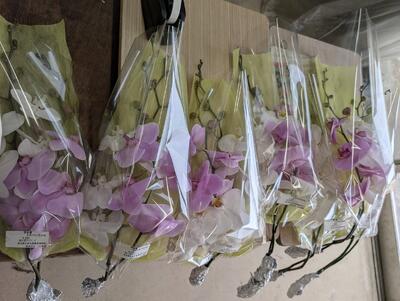 ひとつの束に10輪以上お花が入るようにラッピングしました。