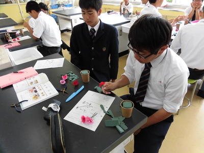 5月13日(月) 施設園芸科3年生フラワーアレンジメントの授業の様子です。 一日遅れましたが、カーネーションの造花を使って母の日の ギフト作成を行いました。 |