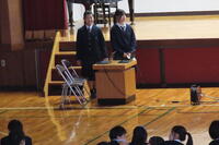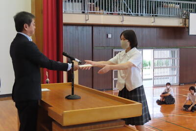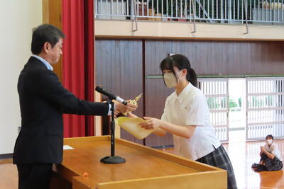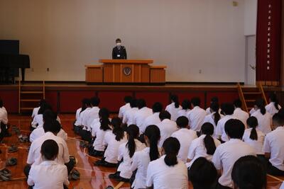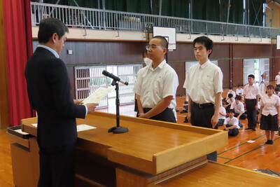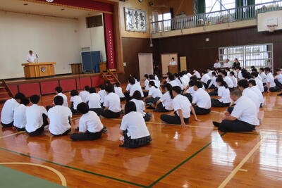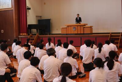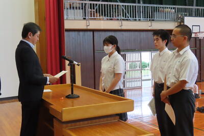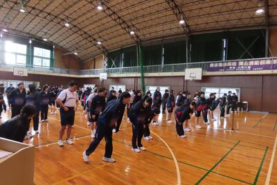 お次は、県高校総合体育大会に出場する生徒の壮行式を行いました。