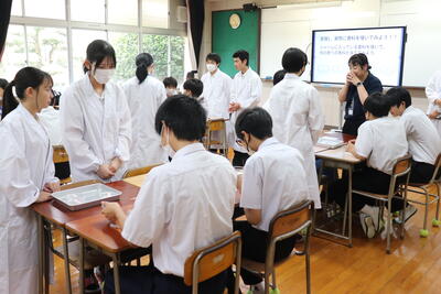 酵素は、生物の体内で行われる化学変化の大部分を担っています。組織の中では、呼吸に伴って有害な過酸化水素が発生します。それを分解する酵素(カタラーゼ)が多く含まれる鶏のレバーを使って、酵素の性質を理解する生物実験を行いました。