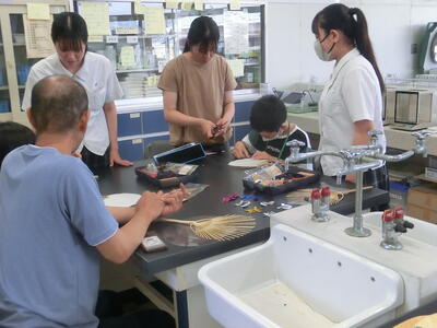 ここ最近、気温が35℃越えで暑い日が続いています夏バテをしている人も多いかと思います。食品科学科3年の製菓の実習では夏の暑い日も涼しさを感じる「水まんじゅう」の製造実習をしました