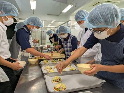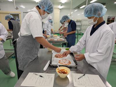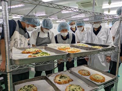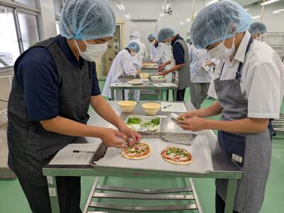 1年園芸技術科の生徒さんが食品科学科にピザ作りに来てくれました