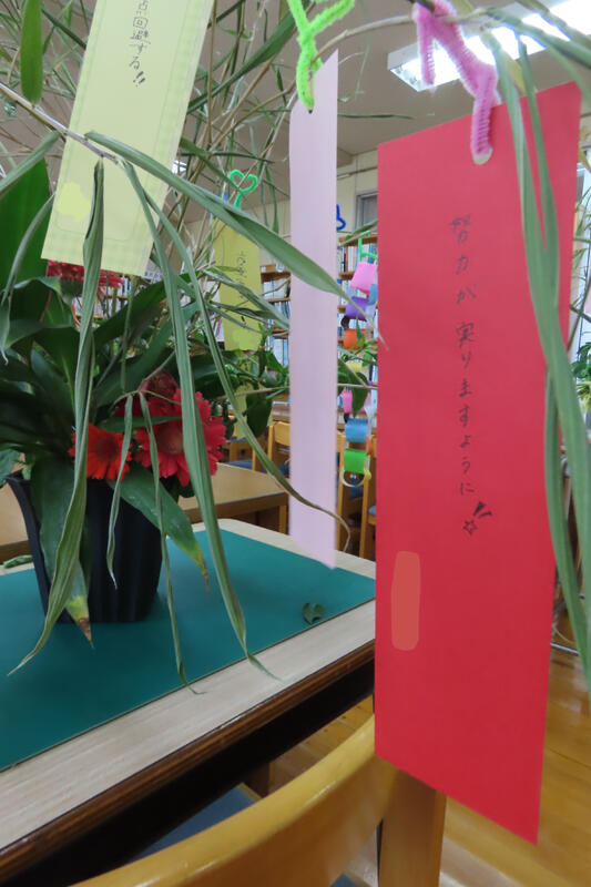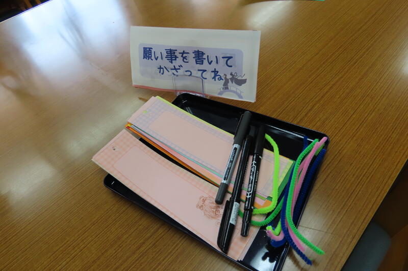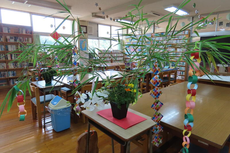 図書館では、七夕飾りを行っています。