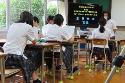 地元が山鹿の生徒も山鹿以外から通っている生徒も「山鹿の魅力」について、様々な視点からテーマを決めて、一年間調査研究を行った成果を発表しました。