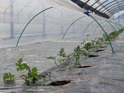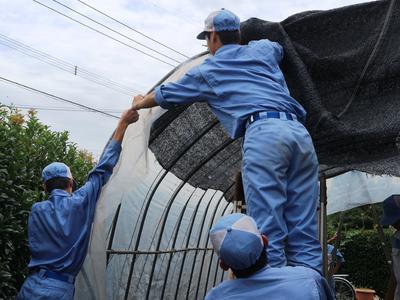 大型のハウスは先生が上って紐をかけ、補強しています。