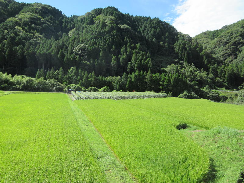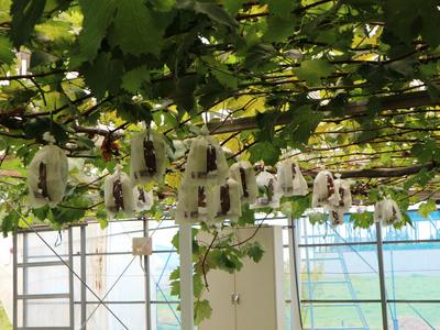 棚田がある穏やかな田んぼの真ん中に、ワイン用のブドウがありました。