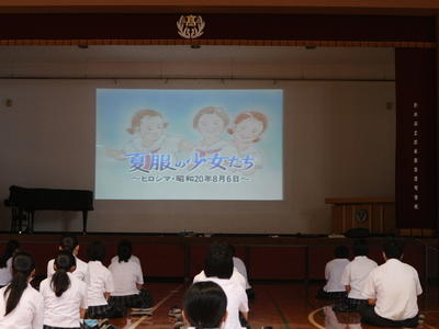 1限目に今年度の平和教育を行いました。今回は「夏服の少女たち」という作品を視聴しました。