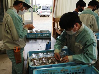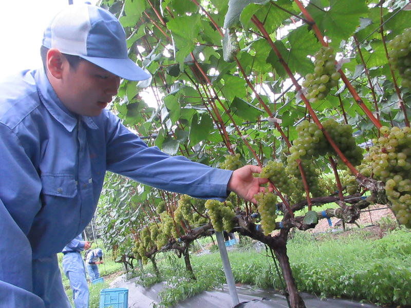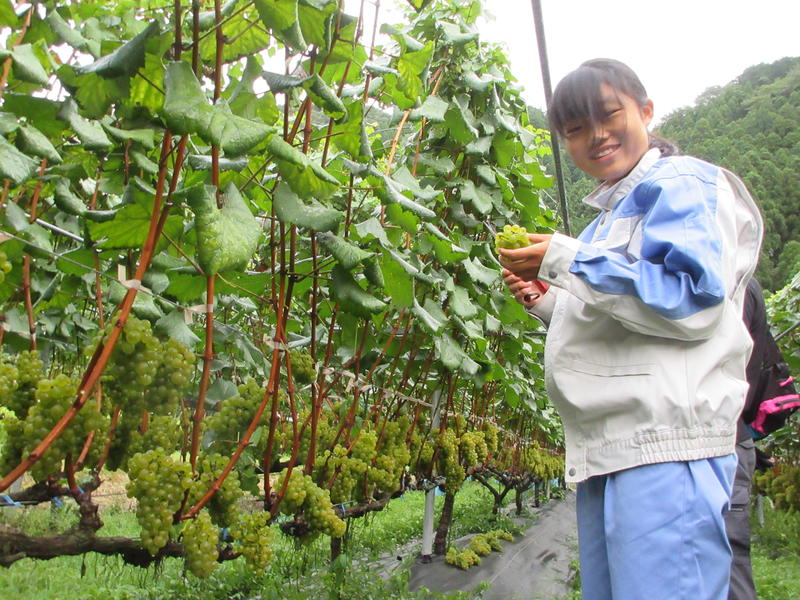 糖度が高く、実が詰まっているブドウだけを厳選して収穫します。