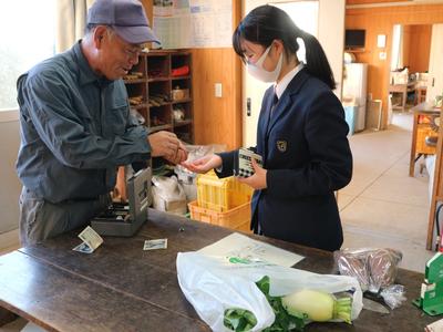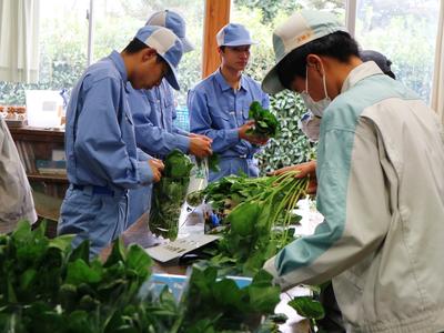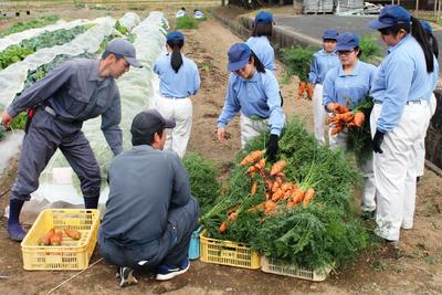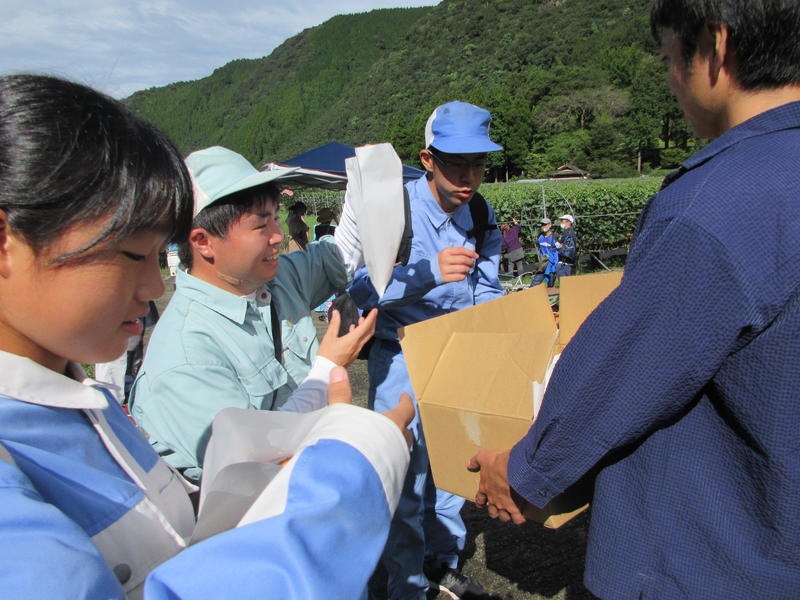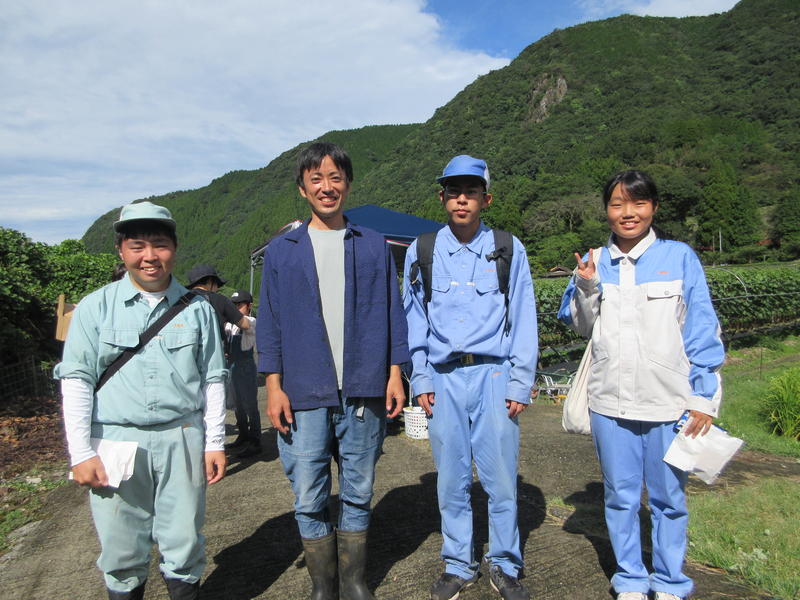 菊鹿町で合鴨農業をされている市原さんの畑で菊鹿中出身の生徒達が収穫体験をさせて頂きました。
