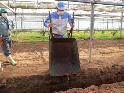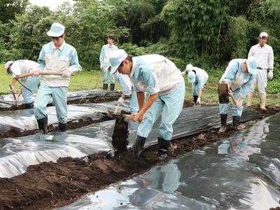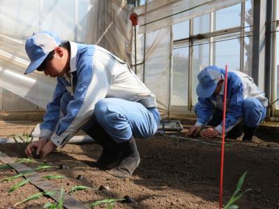 食品工業科の生徒は屋内で加工食品の製造をしているイメージが強いと思いますが、こうやって屋外での農作業も行っているんですよ。
