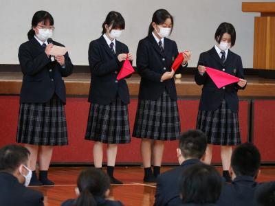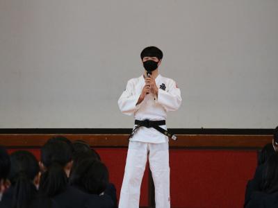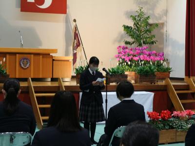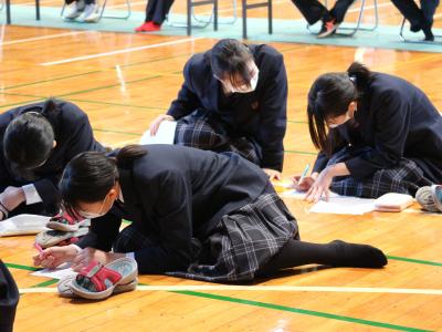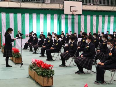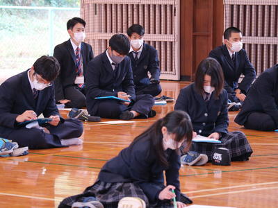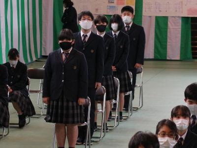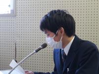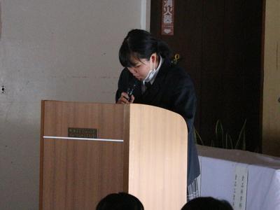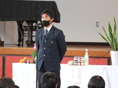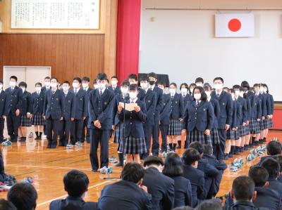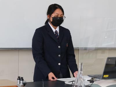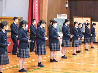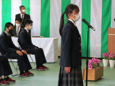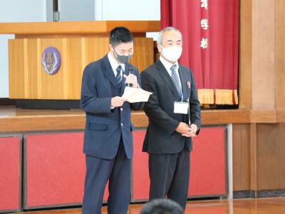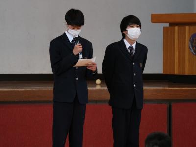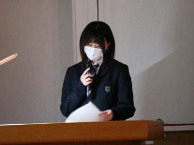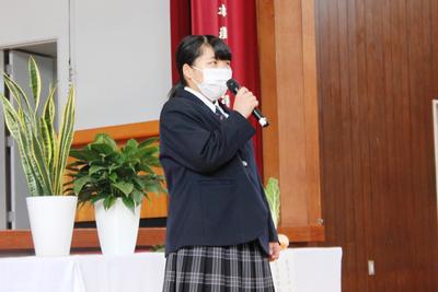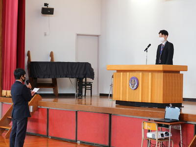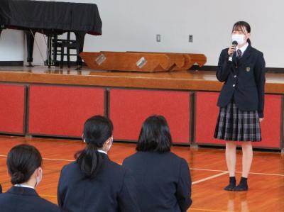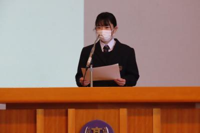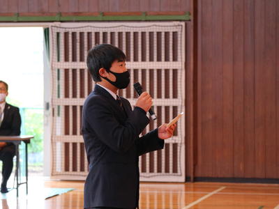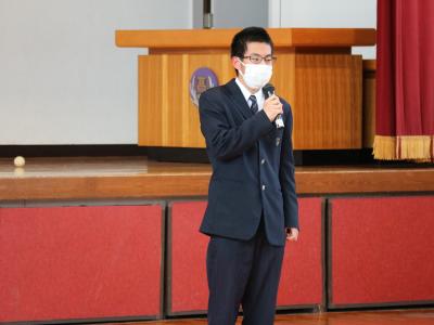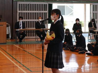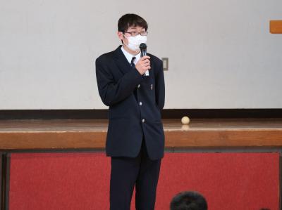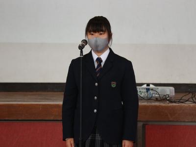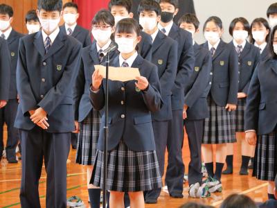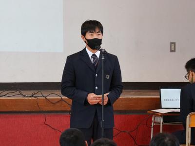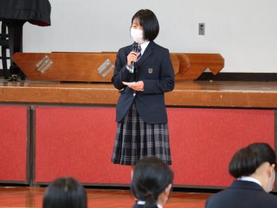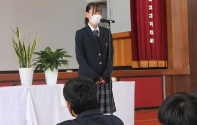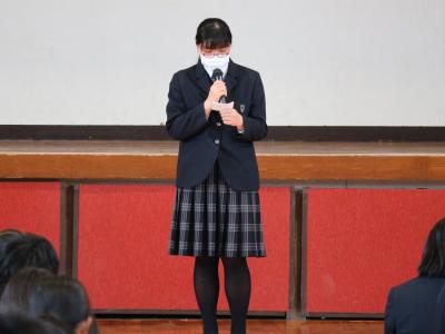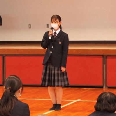 意見発表大会は生徒の身近な問題や将来の問題について抱負や意見を交換し、問題解決のための主体的・積極的な態度と能力を養うことを目的としています。
