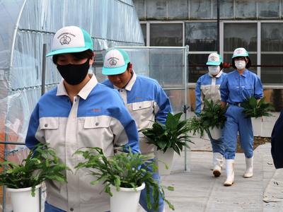 シクラメンの「葉組み」を行っていました。葉組みとは葉を外側に移動させ、花芽を真ん中に集める処理です。