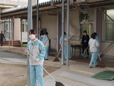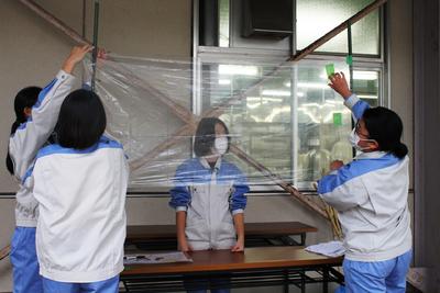 非常に強い台風10号が近づいているため、生徒たちは台風対策に大忙しです。