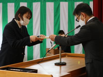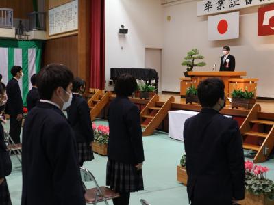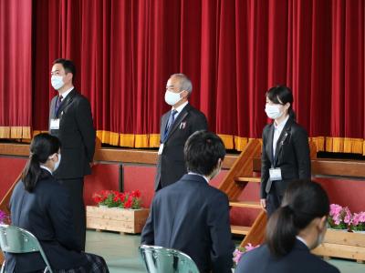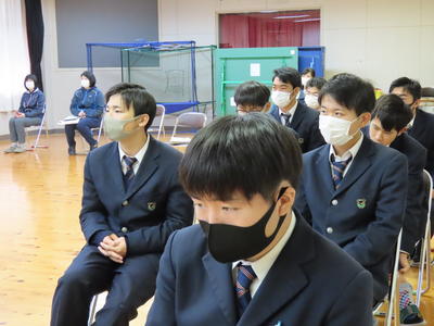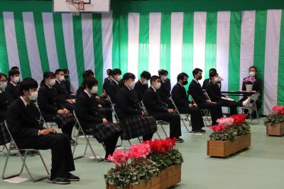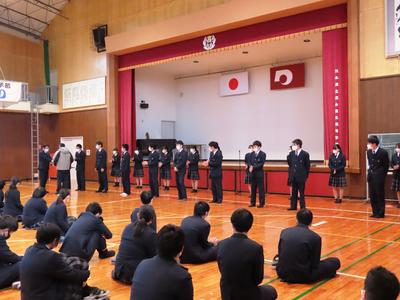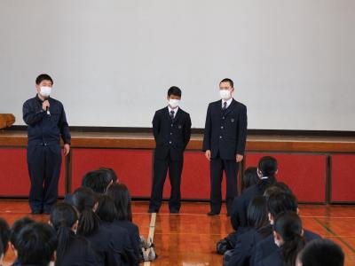 表彰式の後は、学年主任から2年生関係の行事(現場実習・インターンシップ・修学旅行)に関する予定変更の連絡がありました。