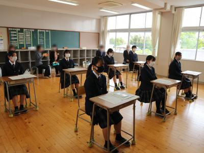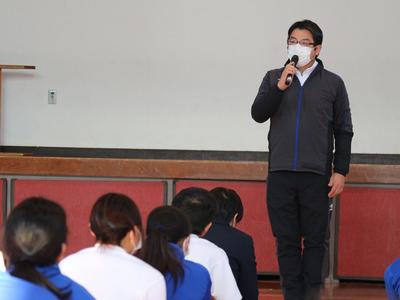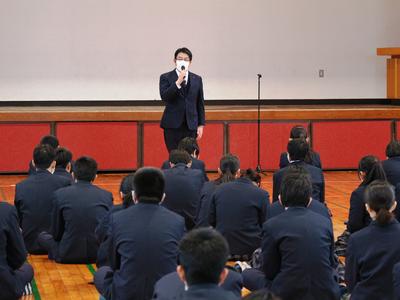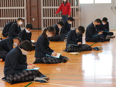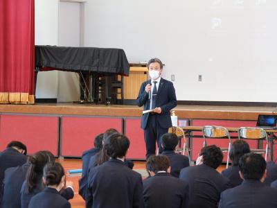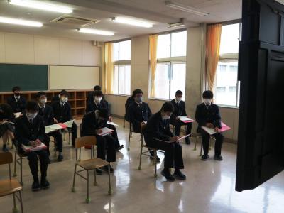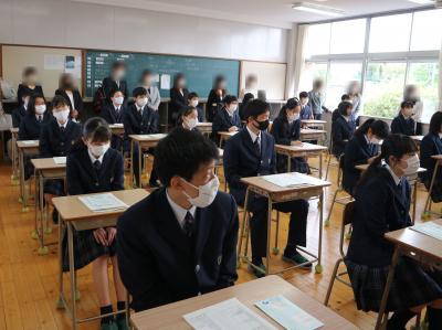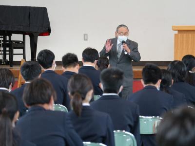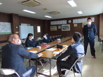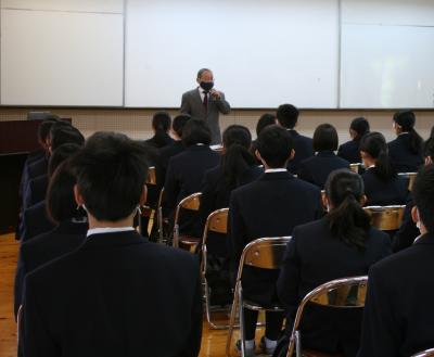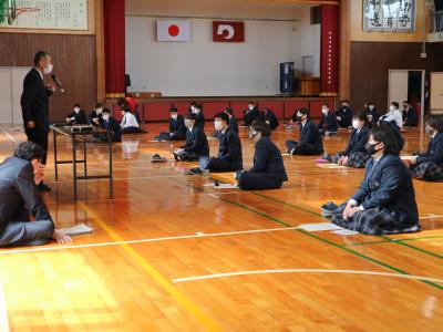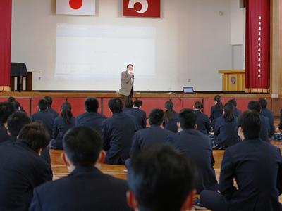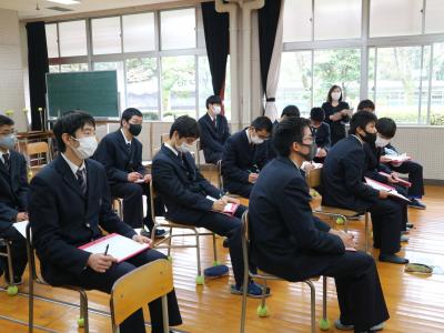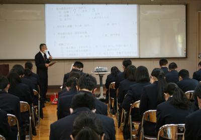 昨年の卒業生の進路状況や求人件数、就職関係の今後の日程、進学関係の今後の日程、今年の就職・進学試験の見通しなどについて話がありました。