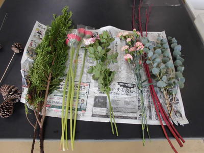 4種類の材料(乾燥した葉)から好きなものを選び、