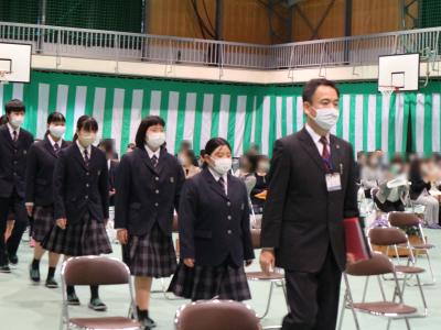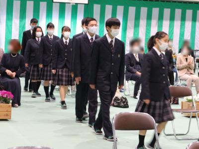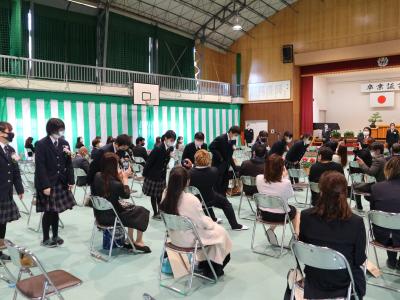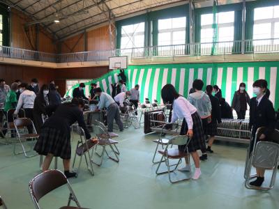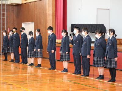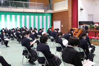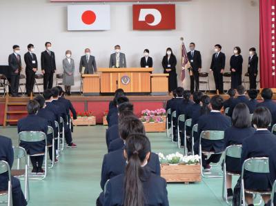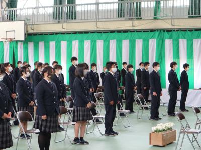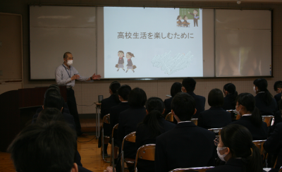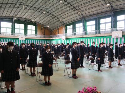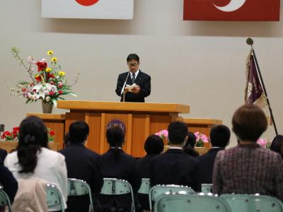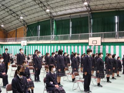 | 今日一日、講話や話を聞いて、長く感じた生徒もいたかもしれませんが、最後まで顔を上げてしっかりと聞いてくれました。 高校生の自覚も芽生え、明日からの学校生活にも気持ちの変化が出てくる人がいるかもしれませんね。 明日は生徒会長が話をしてくださった、部活動の編成があります。気になる部活にはいって、充実した学校生活をおくってくださいね。 |