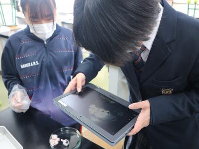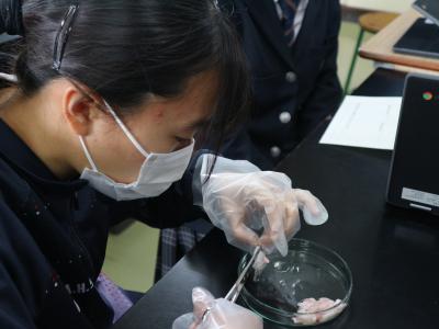 「それぞれの色素の色を記録して」との指示に、何色と表現するか生徒たちは頭を悩ませていました。