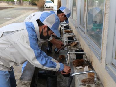本校の体育館は横が圃場のためかとても滑りやすく、ケガが心配です。