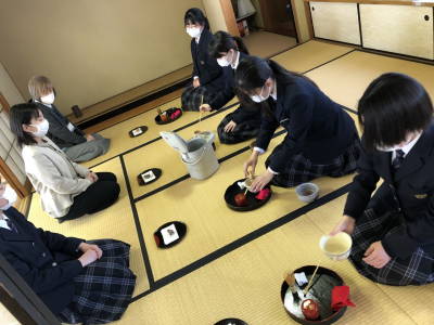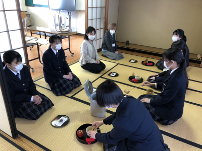 新しく茶道部の顧問になられた先生と、2年生で体験入部に来てくれた生徒2人に
