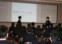 研修①農業クラブ入会式 農業高校には農業クラブという組織があります。農業クラブの役員の皆さんより、活動 |