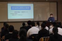 研修⑨生徒指導主事 学校生活をおくる上でのルールや注意点についてお話がありました。 |