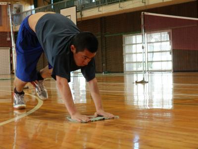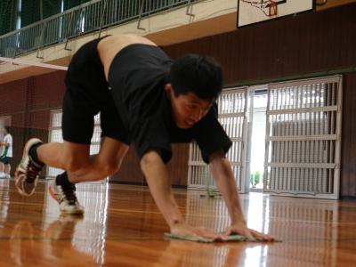 そこで今年度から、ウォーミングアップのあとに雑巾がけをすることにしました。もちろんトレーニングも兼ねてます。
