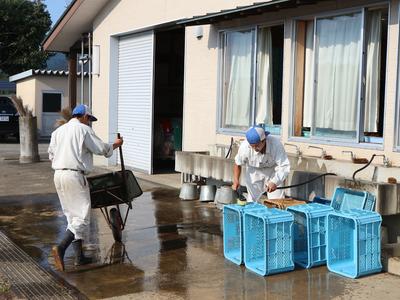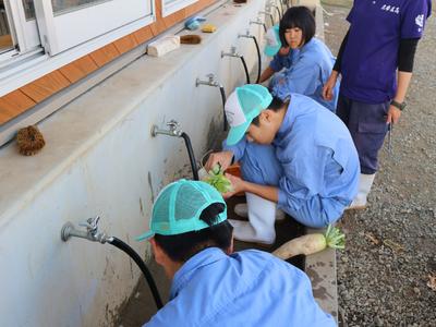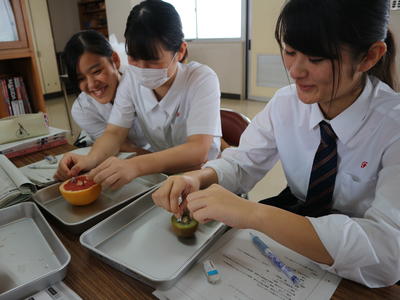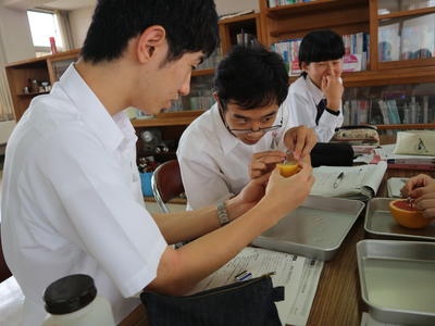 本日、3・4限目の授業時間に2年食品工業科の生徒たちによる八朔(はっさく)の前処理が行われました。