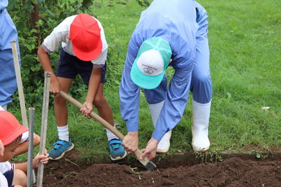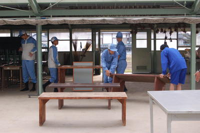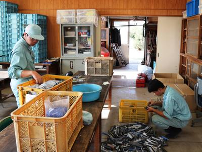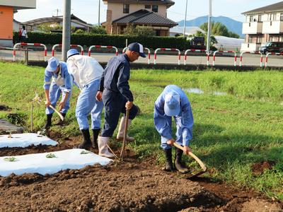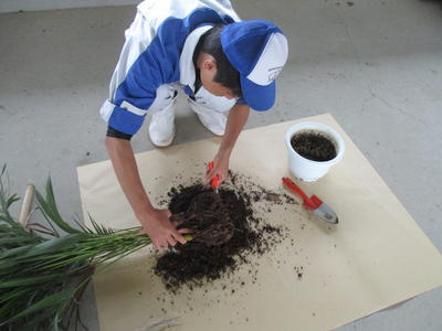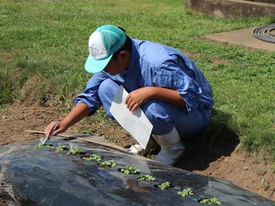 2学期に入り、早速放課後の当番実習が始まっています。 ソルゴーへの灌水。ソルゴーは作物ではなく緑肥の一種で、そのうちすき込んでしまいます。 ホウレンソウやブロッコリーの苗への灌水。写真には写っていないところに、まだまだたくさんの苗があります。 何かのポット上げの準備のようです。 使用した器具の洗浄・片付け。 ビニールハウスのビニールを止めるパッカーを、サイズ毎に分けています。 何かの種子の数を、一所懸命に数えていました。 畑の周囲の整備中です。1年生ですが、鍬を持つ姿が板についてきました。 ダイコンを育てるための畝立ての準備。ダイコンは2学期、1年生の全科が共通で育てます。 非常に暑い中、みんな頑張っていました。 |