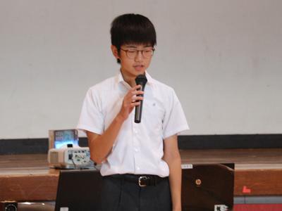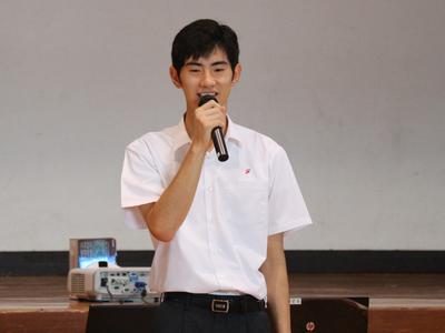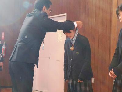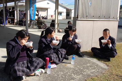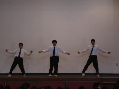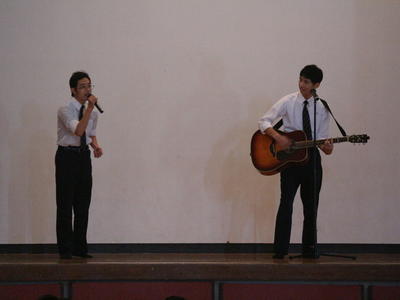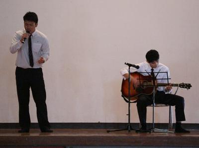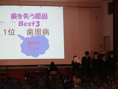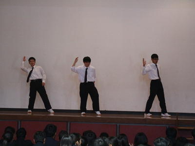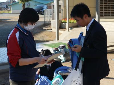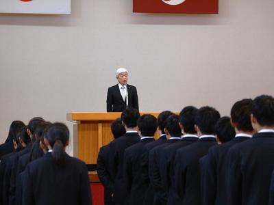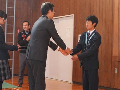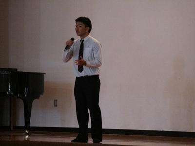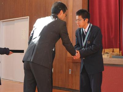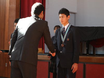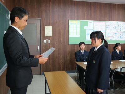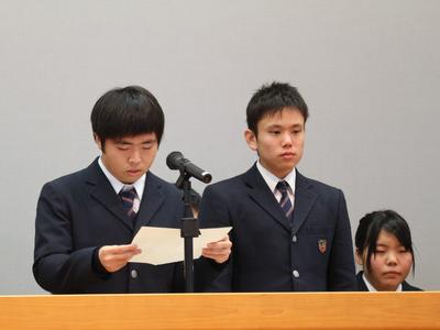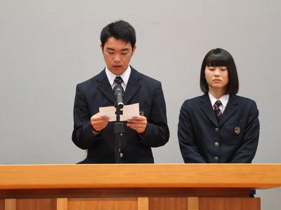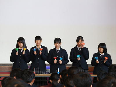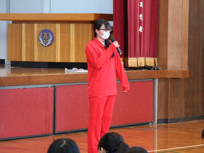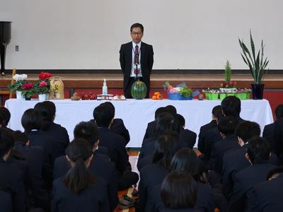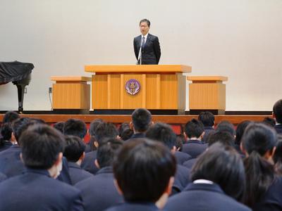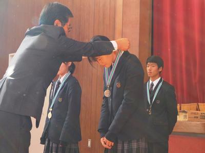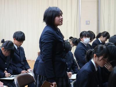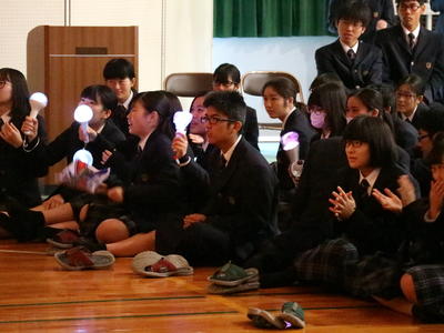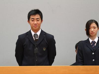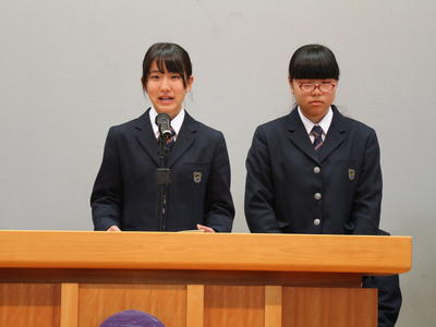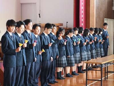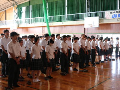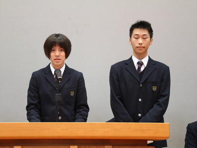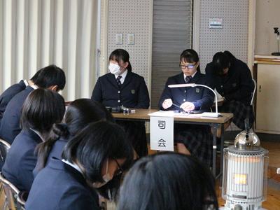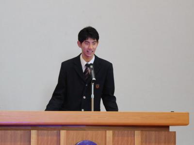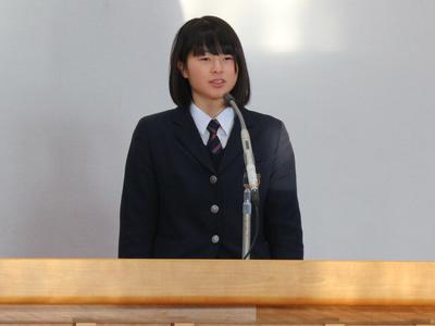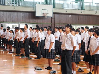 始めて参加する1年生は、特に興味津々で見ていました。 校歌斉唱 閉会 生徒会副会長 |