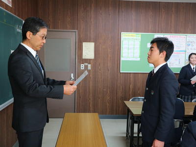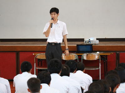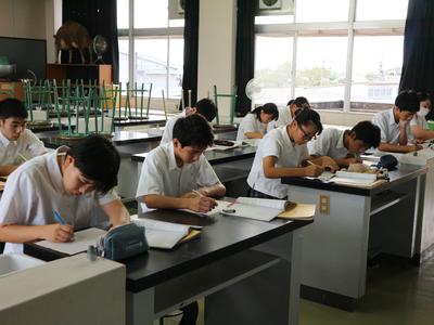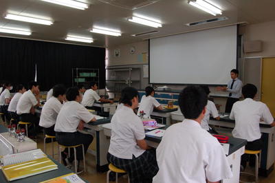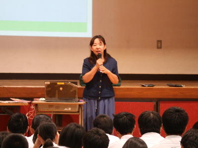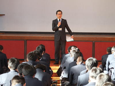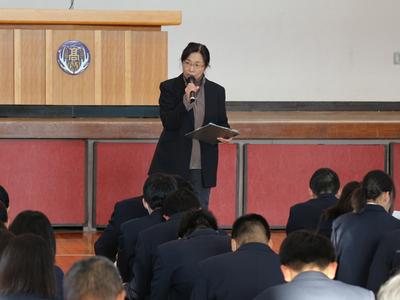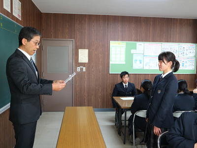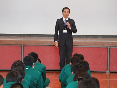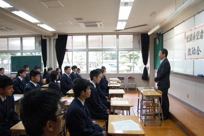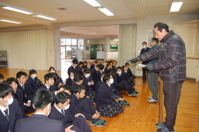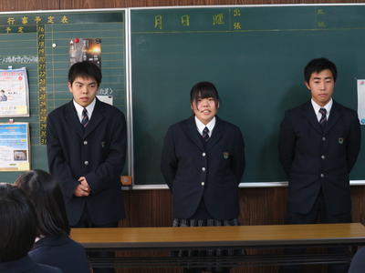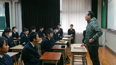 1限目の「総合的探求の時間」に、農場長から講話をしていただきました。 お話は本校の歴史から始まり、先日発表された学科改編についても説明がありました。 みんな真剣に聞いています。 講話の中で、バイオ工学科のこれまでを振り返る場面もありました。バイオ工学科を卒業し、現在本校に勤めているの先生の卒業アルバムの写真も公開され、大きく盛り上がりました。 「鹿本農業高校生の全員に夢を叶えるチャンスがあります。そのチャンスをつかみ取るために、積極的な行動をとってください」という励ましと期待の言葉で講話は締めくくられました。 |