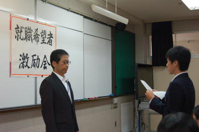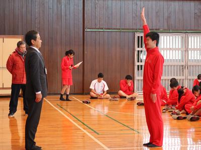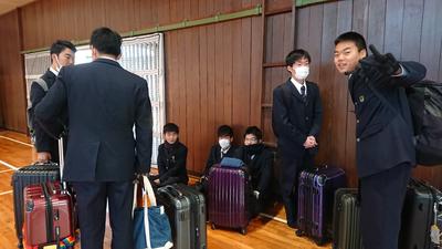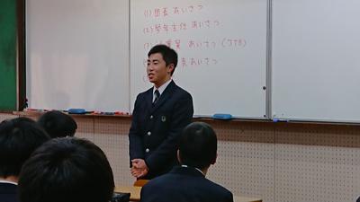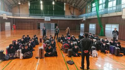 修学旅行を明日に控え、2年生が結団式を行いました。団長は教頭先生です。