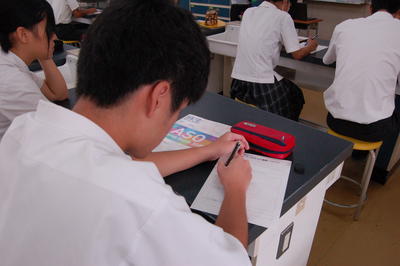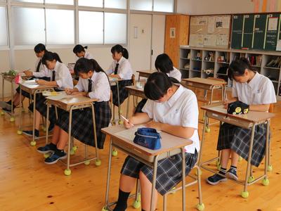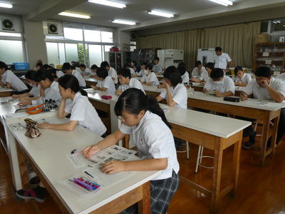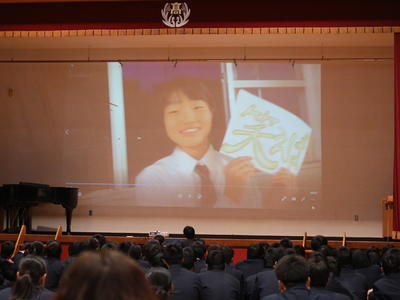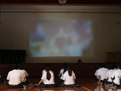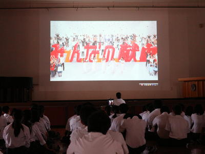 さて、この時間は「夏服の少女たち~ヒロシマ・昭和20年8月6日~」というDVDを視聴しました。これは1988年に放送されたNHK特集を再編集したもので、戦時下の13歳の少女たちが主人公です。戦時下ではありながらも女学生になった喜びをかみしめる少女たちのつかの間の青春をアニメーションで、残された家族の深い悲しみをドキュメンタリーで描いた作品です。 とても暑い中でしたが、生徒たちは頭を上げて、真剣に見入ってました。(画面はぼかしています) 視聴後は教室にもどり、感想を書くことで自分の考えをまとめました。 ~生徒の感想より~ 〇DVD「夏服の少女」を見ての感想を書いてください。 ・自分よりも若い命、そして夢や希望のある命が失われたと思うと心が痛くてたまりません。 ・話の中で日記が紹介されていましたが、とても13歳の子どもが書くものには思えませんでした。子どもの無邪気さを戦争が奪っていたのだと思いました。 〇戦争・命の大切さ、についてどう思いますか。 ・戦争は何もかもを消してしまう恐ろしいものだと思います。 ・今の時代に生まれたからこそ、私たちにしかできない使命があると思います。次世代の人たちにそれを伝えていくことが使命なのかも知れません。 〇命を落とすのは戦争だけではありません。自分や身の回りの人たちの命や心を大切にするために、あなたができることを書いてください。 ・自分が周りの人にできる事は、その人の心を考え、どんなふうに話をするか、行動をするかを考えることだと思いました。 ・人は希望や目標、夢をもっていないと生きていけません。自分の人生を楽しみ生きがいを感じてもらえるように、一緒にそれを探しに行くことが私にできることだと考えます。 |