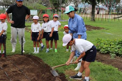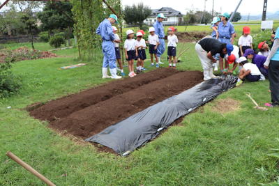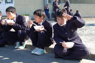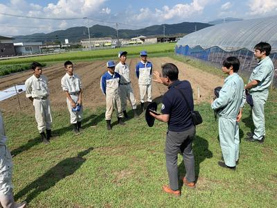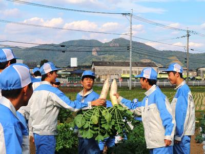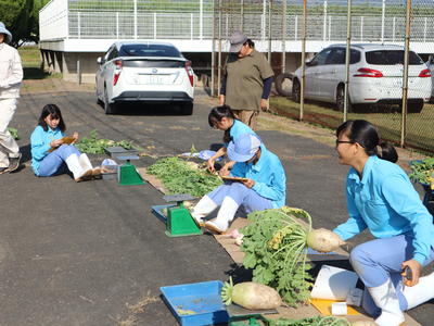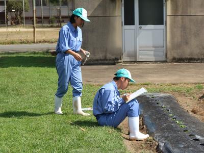 毎週火曜日の5・6限目は、全学科共通で「農業と環境」の授業が行われています。 今週は各科とも実習のようでしたので、5限目にちょっと覗いてきました。 <施設園芸科> タマネギの種子を播いていました。畝に手で溝を切り 小さな種子を、一粒ずつ播きます。 上から軽く籾殻のくん炭を被せ、完了です。 くん炭には保湿や虫除けなどの効果があり、またこの時期の固い土を被せるより、芽が伸びやすいのだそうです。 <バイオ工学科> 先週植えたダイコンの芽を観察していました。 葉の大きさなどを測定し、気付いたことを記録しています。 <生活科学科> バイオ工学科と同じく、ダイコンの芽の測定・観察をしていました。 ダイコンは2学期の全科共通作物なので、施設園芸科も食品工業科も同じような作業を行います。 生活科学科のダイコンの畝にはマルチ(ビニールシート)が被せてないため、雑草を抜く作業も一緒にしていました。 なお、食品工業科は本日、先進地視察研修に出かけているため不在でした。 |