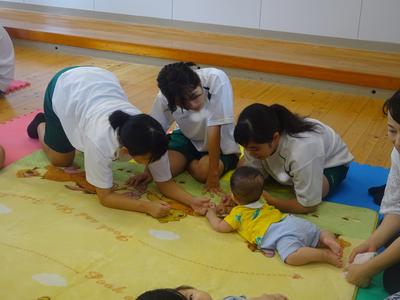 9月12日(木) 今日の2年生活科学科『子どもの発達と保育』の授業は、 山鹿市子ども課、山鹿・鹿本・菊鹿児童館に協力して頂き、 赤ちゃんふれあい交流会を行いました。