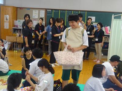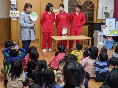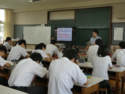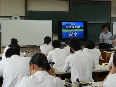 事前に抱っこの仕方や乳幼児の発達段階などを教わりました。 実際の乳幼児はすごく柔らかくて、生徒も緊張気味・・・ 代表して4名の生徒が、妊婦体験をしました。 妊娠後期に買い物をしたり、靴下をはくこと、 上の子どもを抱っこすることが大変だったと聞き、 挑戦してみました! 他にも、ミルクをあげたり、立ってだっこしてみたり、 おもちゃや絵本の読み聞かせをしてみたり・・・ 最後に、来校して頂いた保育者の方から育児に対する思いや経験を 話して頂きました。 特に男性(父親)の育児参加について、話して頂いたことは、 「夫婦で小さな命を大事に育てること」の大切さを考えさせられる 貴重なお話でした。 12名の乳幼児さん、保護者の方、児童館職員の先生方、 貴重な機会をありがとうございました。 また、ぜひ鹿本農業高校へお越しください! |