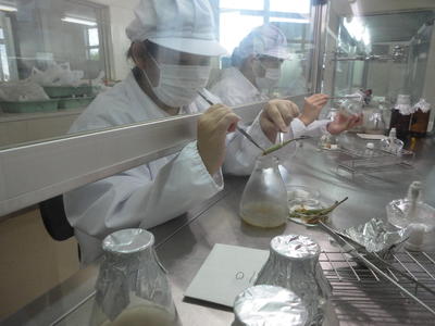 バイオ工学科の1・2年生でコチョウランの無菌は種実験をしました。