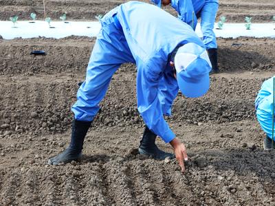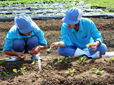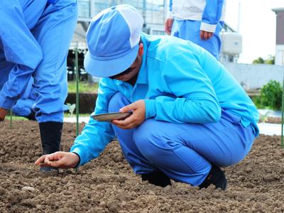 作付け前の土壌診断の結果をもとに施肥設計を行い、試験栽培を行っています。