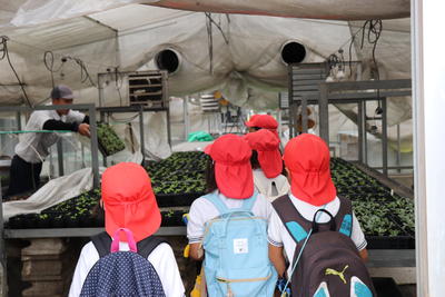 地域の小学校から地域探検依頼があり、施設園芸科の野菜・果樹・草花やバイオ工学科の温室などの見学や体験をしてもらいました!!