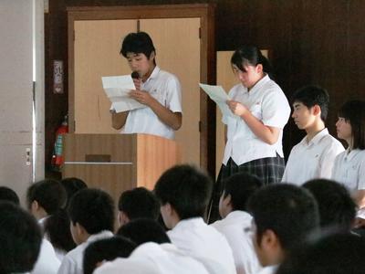 本日1限目、1・2年生合同で今年度の平和教育HR活動を行いました。 最初に、担当の先生からこの時間の目的についてお話がありました。 「今日9月11日は何があった日かな?分かる人」 何人もの手が挙がりました。 「アメリカで同時多発テロが起こった日です」 生徒たちが生まれる前の出来事ですが、ちゃんと知っていてくれました。