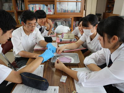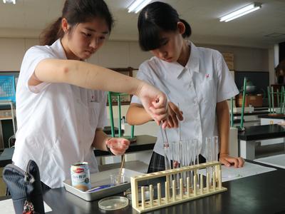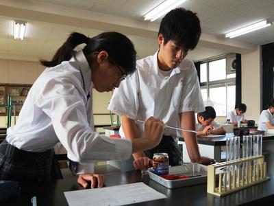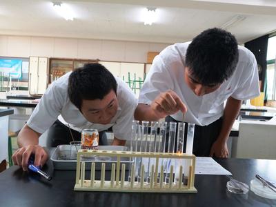 1年生は、さやを切る作業に手間取りつつも丁寧に実験ができていました。