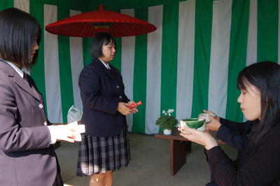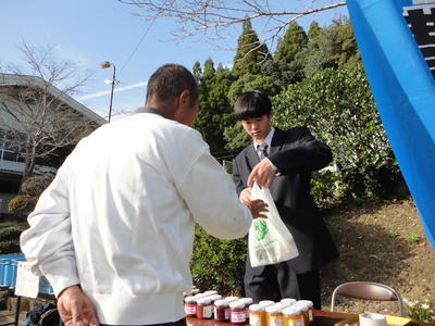 製菓プロジェクト本番では、保護者や生徒が卒業した中学校の先生たちを招き、試食してもらい、自分のレシピを紹介します。