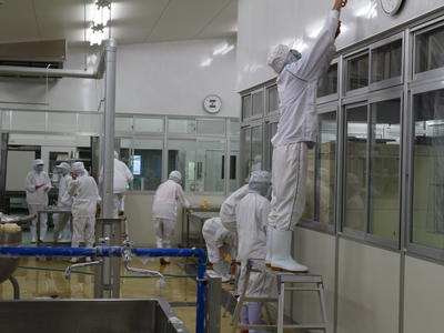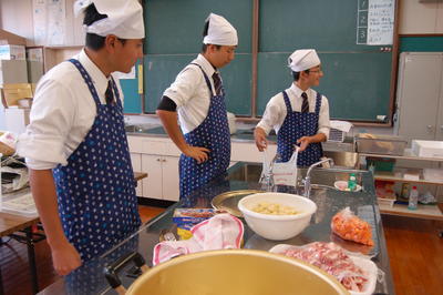 2年食品工業科の生徒たちは少ない人数でしたがみんなで協力し、実習を行いました。