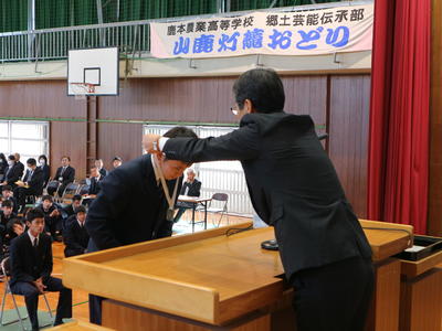 「山鹿市防災の集い」に学校農業クラブ新役人と学校家庭クラブの新役員21名で参加しました。