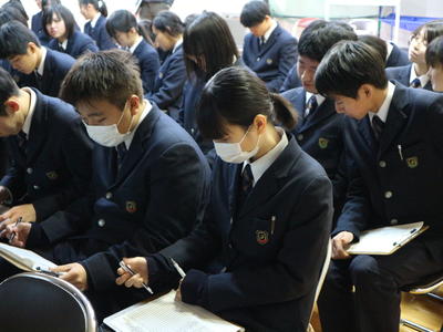 2年生が来週からの修学旅行に向けて事前指導を受けました。