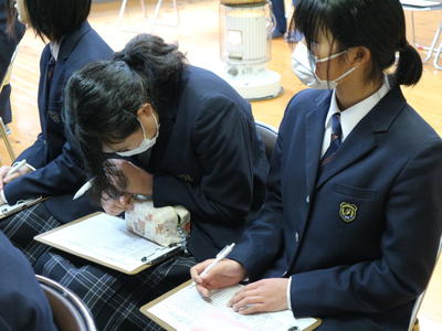 今回防災の集いに参加できた私たち新役員は、学習できたことを全校生徒に伝え、本校や家庭での防災時の対応に生かしていきたいと考えています。